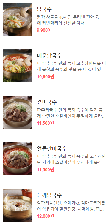 대표메뉴는 가게이름과 같이 "닭국수"인데요. 모든 국수와 죽 메뉴에 같은 닭육수가 들어갑니다. 국수는 칼국수면이고, 모든 면메뉴를 밥으로 바꿀 수 있어서 면이 잘 소화가 안 되시는 분들도 충분히 즐기실 수 있어요. 면의 경우에, 나중에 퍼질 거를 예상하고 만드신듯 첨에는 좀 더 익어야 된다는 생각이 드는데 뜨끈한 육수에 점점 더 익어서 먹을수록 면이 맛있더라구요. 닭 반마리는 부담스럽다 싶으시거나, 고기는 다른 걸로 드시고 싶으신 분들을 위해 소갈비살이나 불고기로 대체된 메뉴도 있었습니다. 제가 먹어본 메뉴는 매운닭국수, 초계면, 들깨닭죽, 불고기덮밥, 안심탕슉이었는데요. 개인적으로 초계면은 따뜻한 메뉴는 아니기도 하고, 이 집의 별미인 닭육수와 불맛을 느낄 수 없기 때문에 별로였거든요. 역시나 없어졌더라구요. 그럼 지금부터 최근에 먹어본 메뉴부터 얘기해보겠습니다.