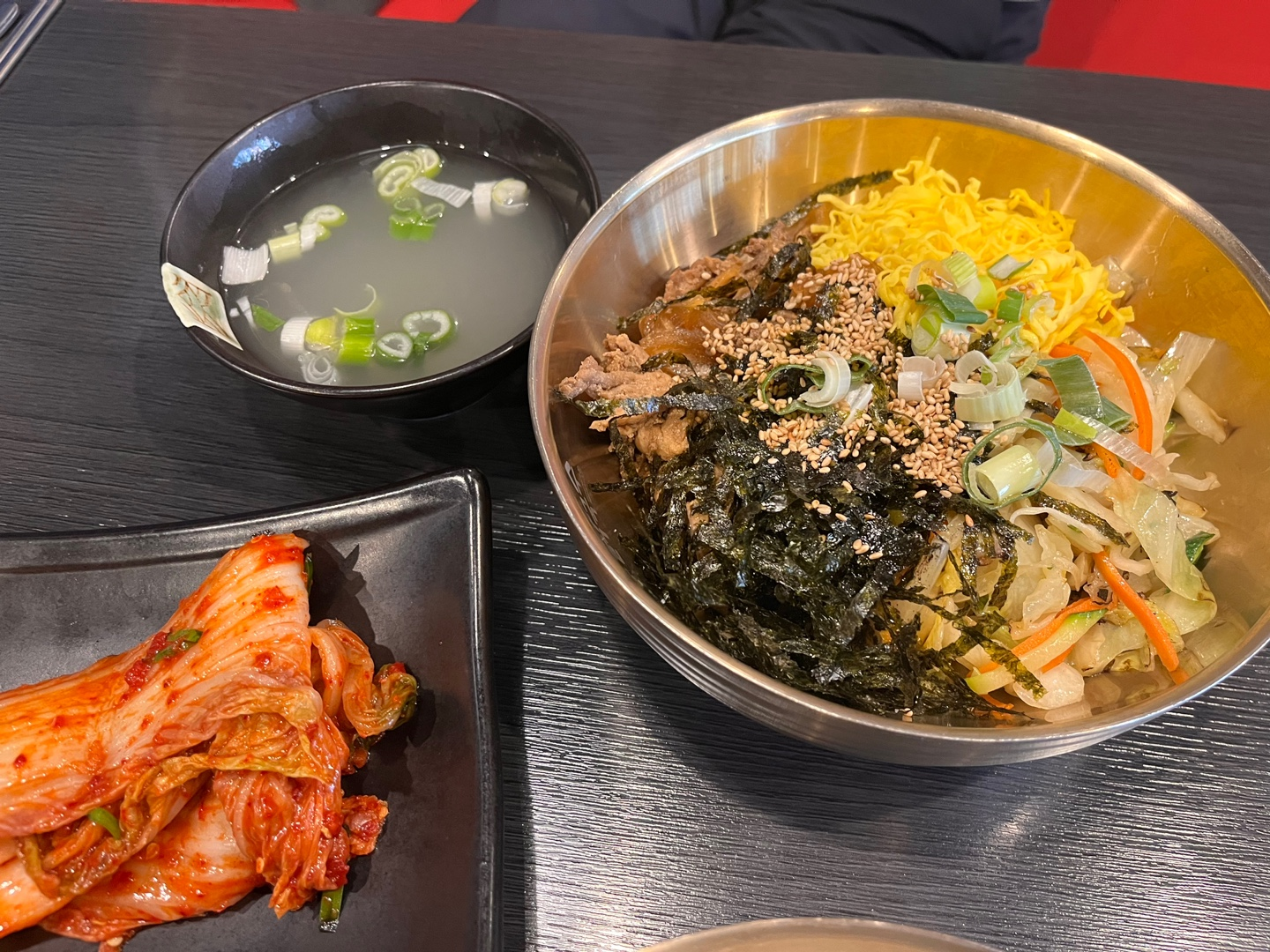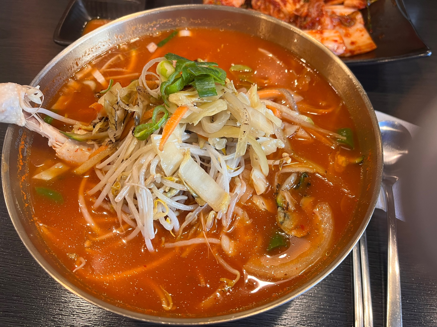 같이 간 동료가 매운 거 좋아하기도 하고, 저도 매운 게 땡기는 날이라 시킨 메뉴였는데요. 그냥 고추장국물을 예상했는데, 여기 쉐프님 좀 배우신 분 같아요. 숙주나물과 양배추를 불맛나게 볶아서 고명으로 올려져 나오더라구요. 👍👍👍 어떤 맛이냐면 매운 나가사키 짬뽕을 먹는 거 같은 맛이에요. 시원하고 깊고 얼큰한 육수가 식도를 막 때립니다. 땀흘리면서 먹었네요. 저는 맵찔이지만 매운 거 땡기면 참고 먹을 수는 있을 정도의 매움이었어요! 불닭볶음면보다는 덜 매운 거 같아요. 닭고기와 소갈비살 둘다 부드럽고 맛있었어요!