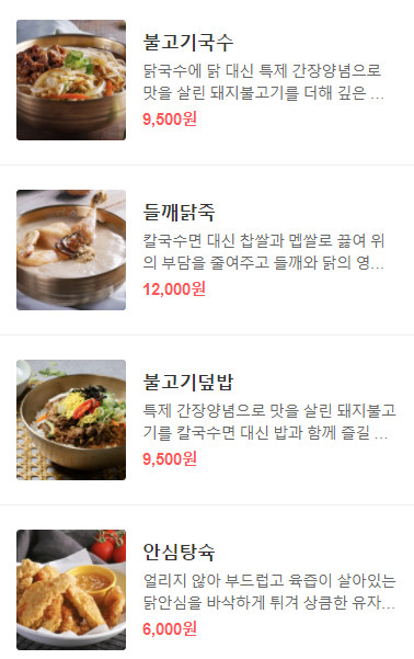 들깨닭죽(좌)와 불고기덮밥(우)
