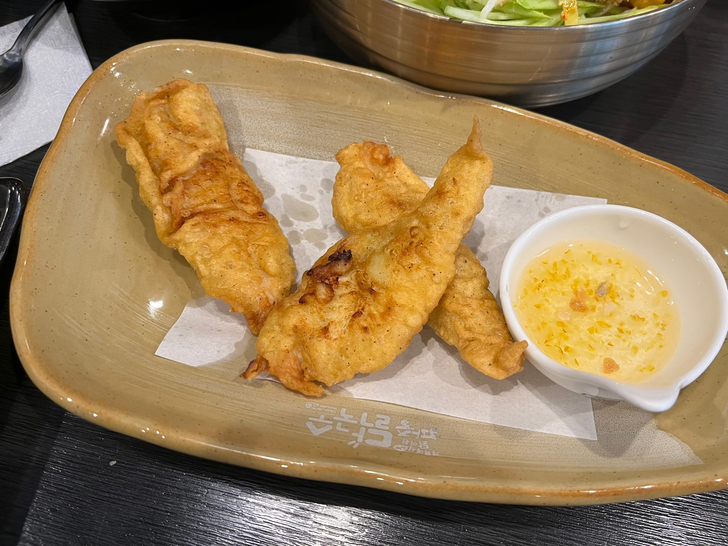 배가 많이 고프시거나 대식가시라면 "안심탕슉"도 추천합니다! 너무나 부드럽고, 저 유자소스가 진짜 별미예요! 입맛을 돋구어주는 맛! 원래 양은 저 사진보다 많아요. 먹다가 찍은 거라서 ㅎㅎ 별로 기대 안 했는데 아주 만족한 메뉴였습니다.