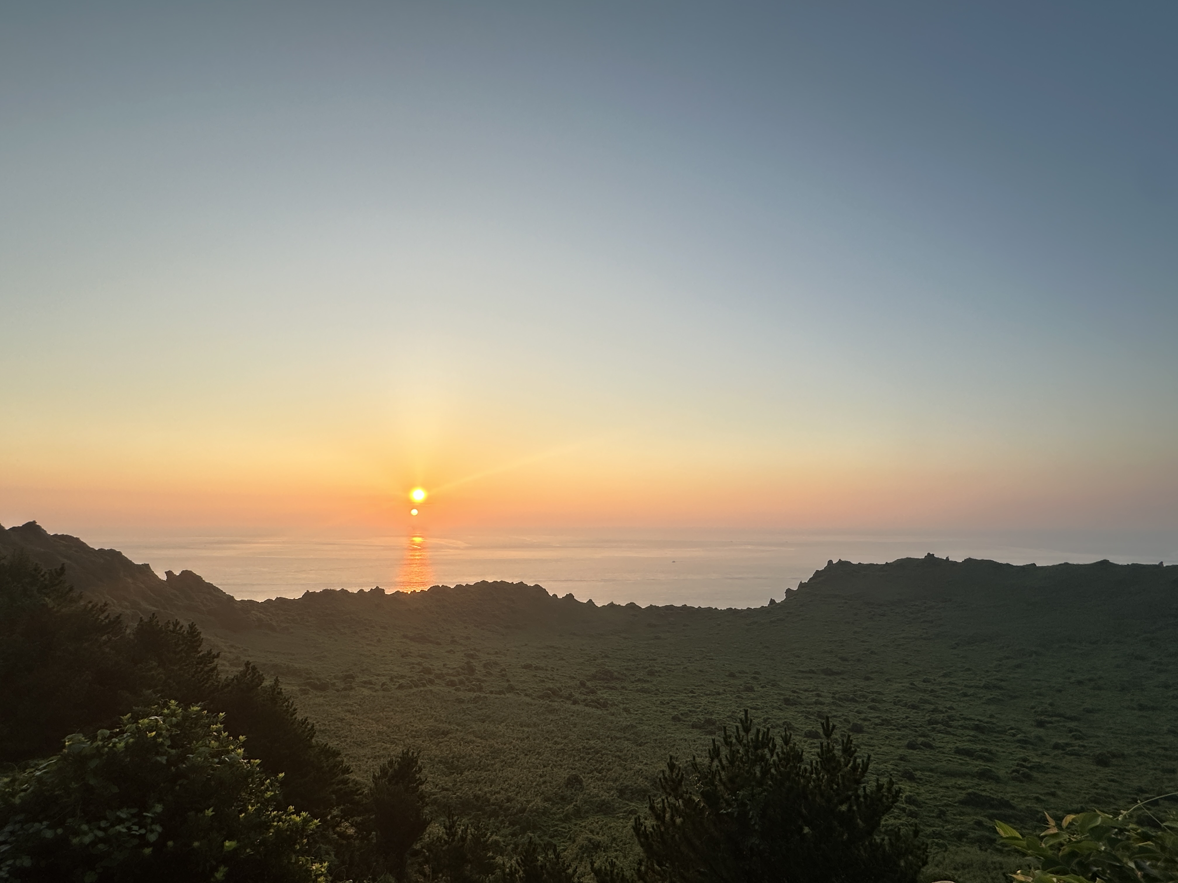 성산일출봉 꼭대기 너머로 보이는 일출사진만 남깁니다 ㅎ