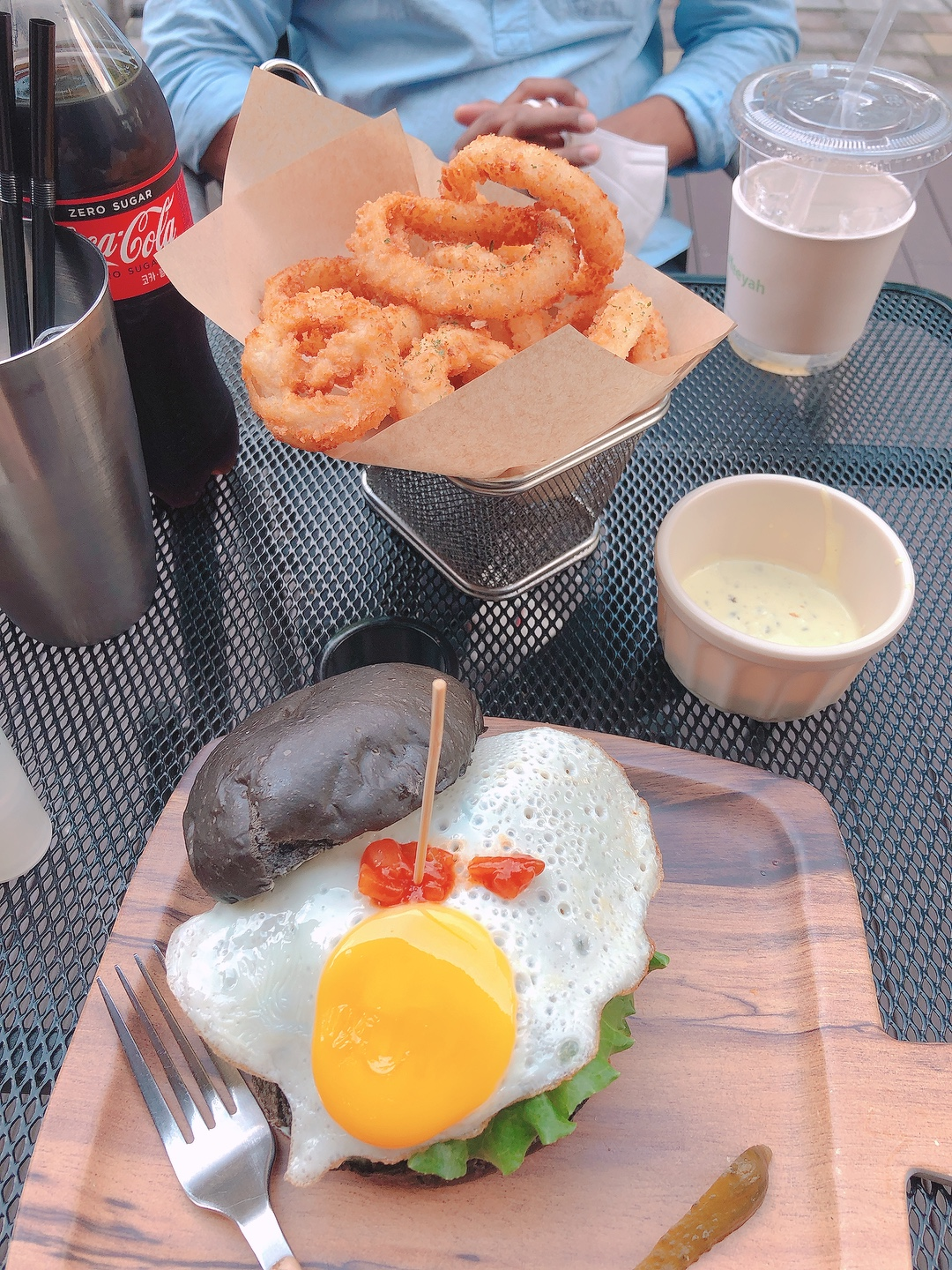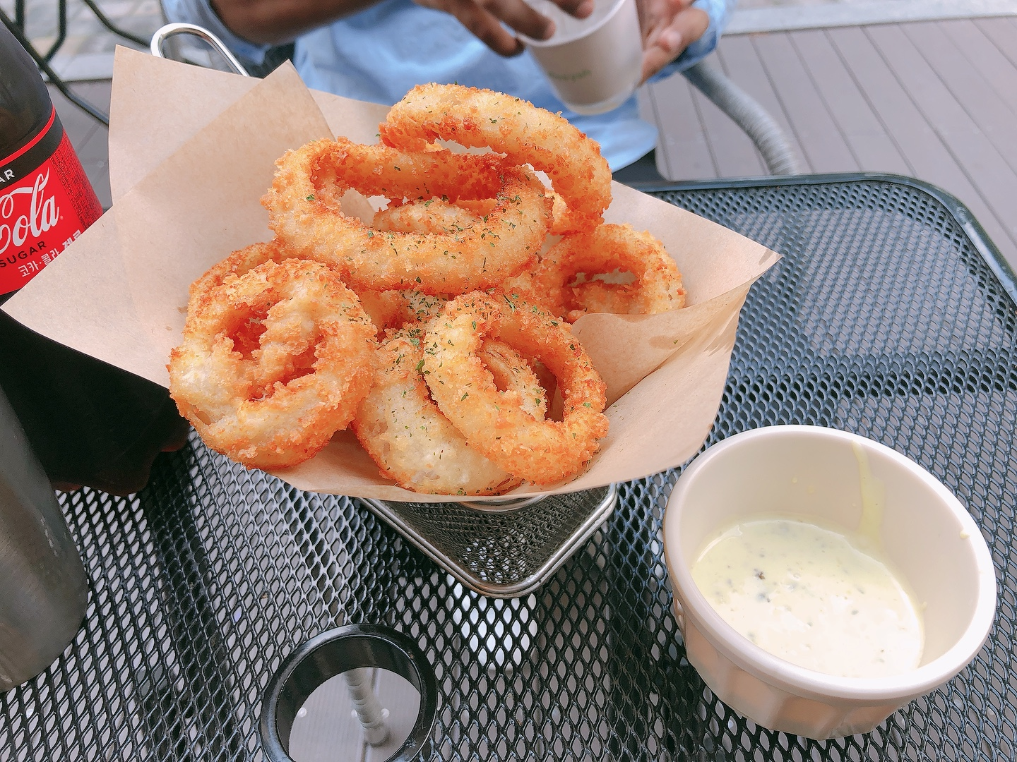 근데 어니언링이랑 같이 나온 소스가.. 와사비마요네즈소스? 였는데, 너무 느끼하더라구여