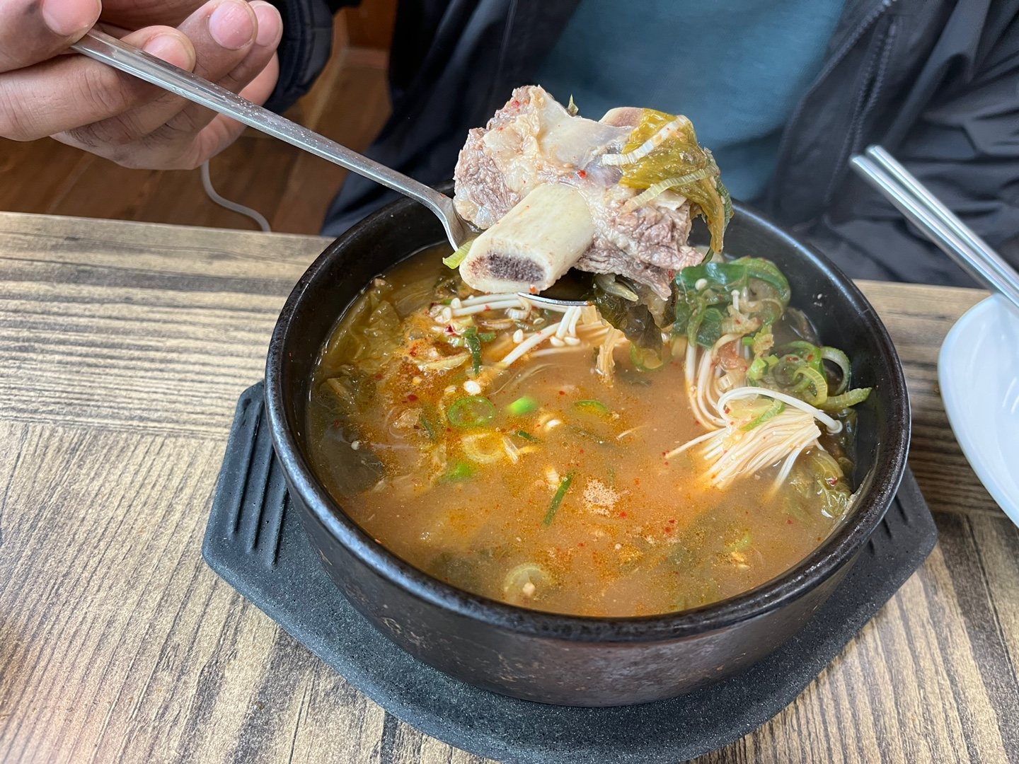 갈비곰탕(15,000)과 우거지갈비탕(15,000)에서 고민하다가 남자친구는 칼칼한 거 먹고 싶다고 우거지갈비탕을 시키고, 아주머니가 갈비곰탕이 고기가 더 많다고 하셔서 저는 갈비곰탕을 시켰습니다. 😋