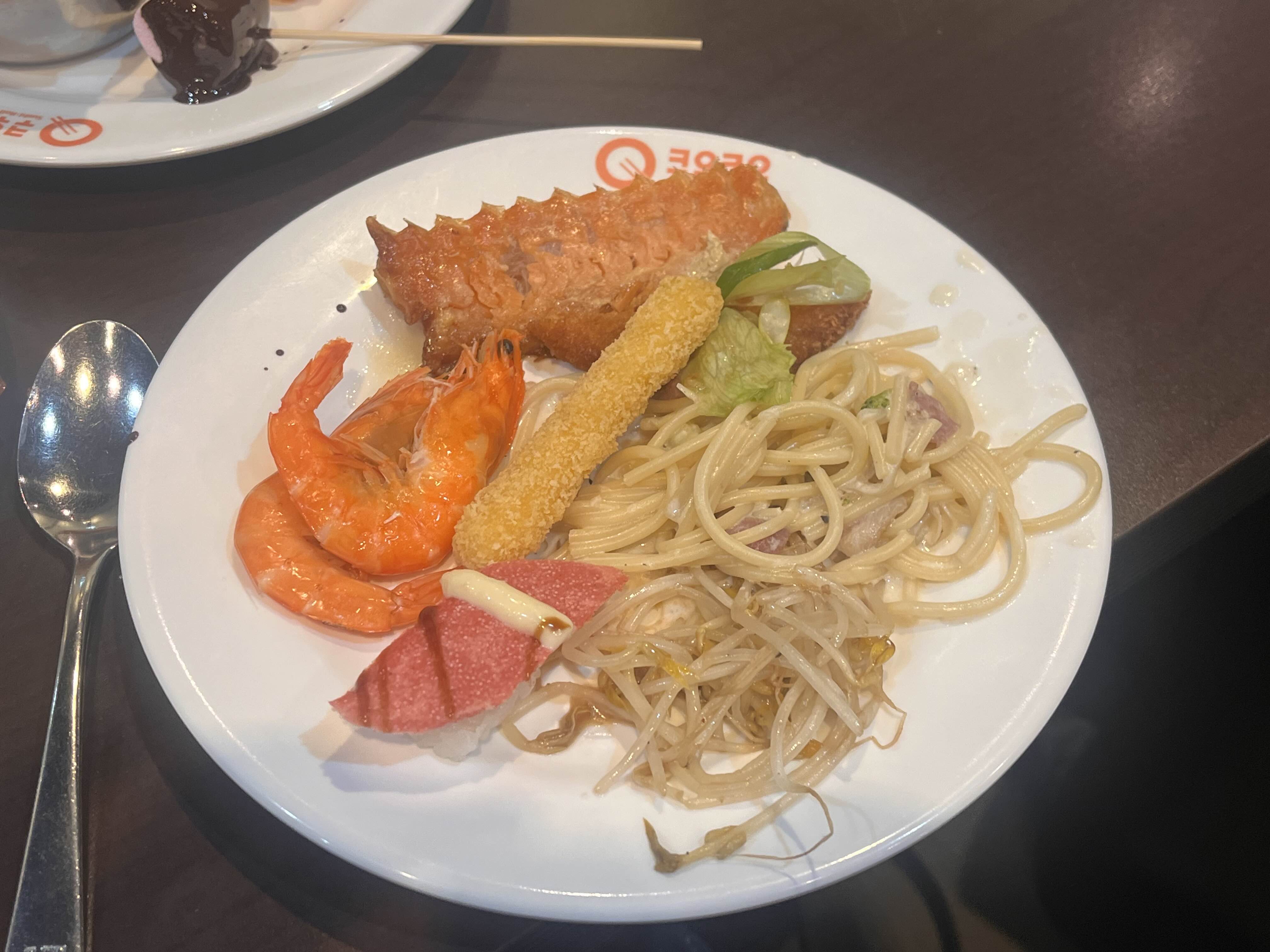 튀김류랑 파스타는 그저그랬는데, 따뜻한 고기요리들이 맛있었어요. 특히 새우강정! 강추 ㅎㅎ