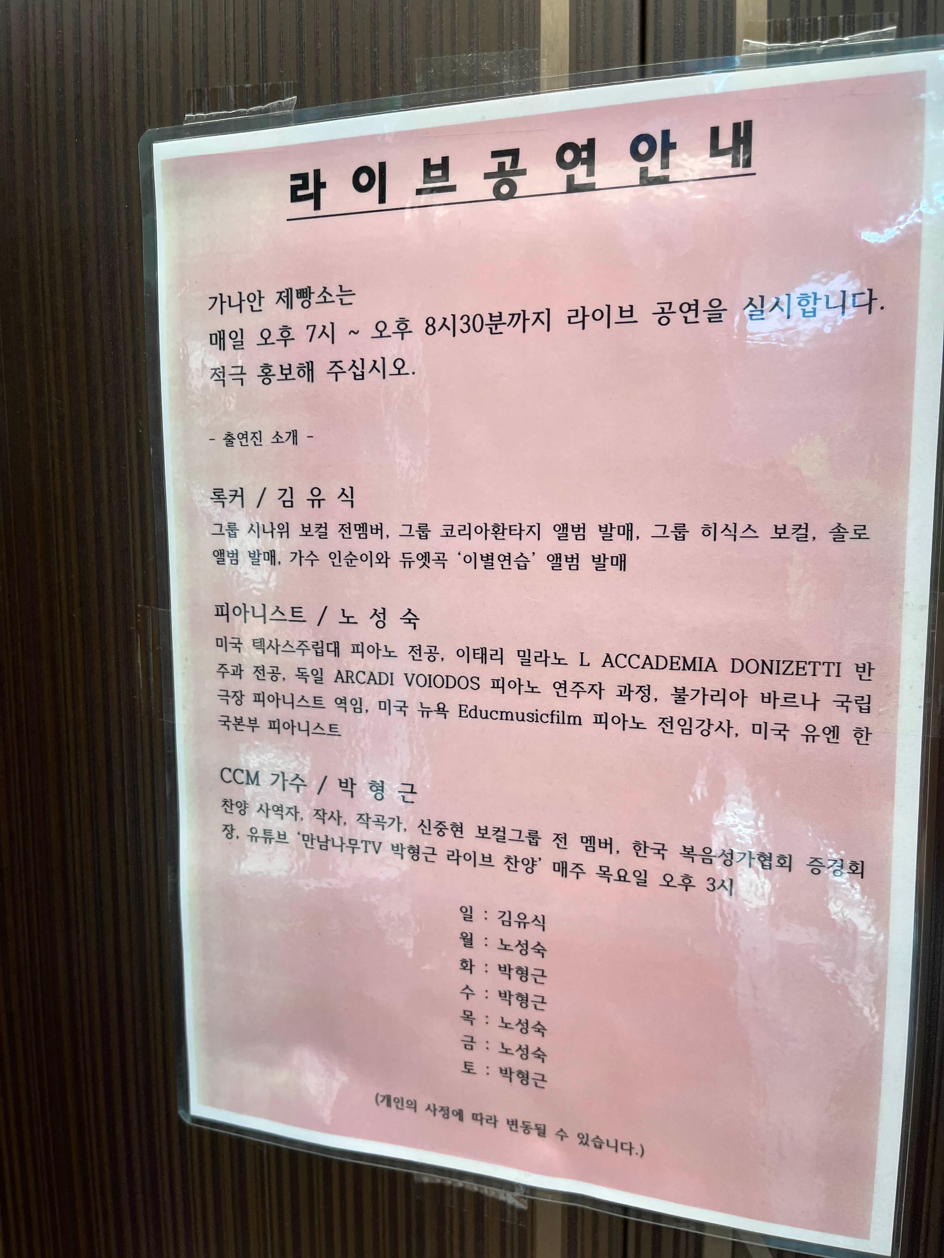 몰랐는데 매일 저녁 라이브 공연이 있다고 한다.