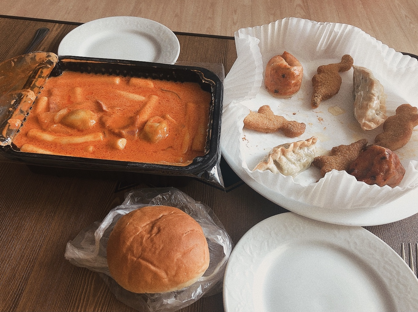 이게 1인분인데, 떡볶이+넓적당면+메추리알+비엔나소시지+베이컨+수제비만두 등이 들어 있어서
