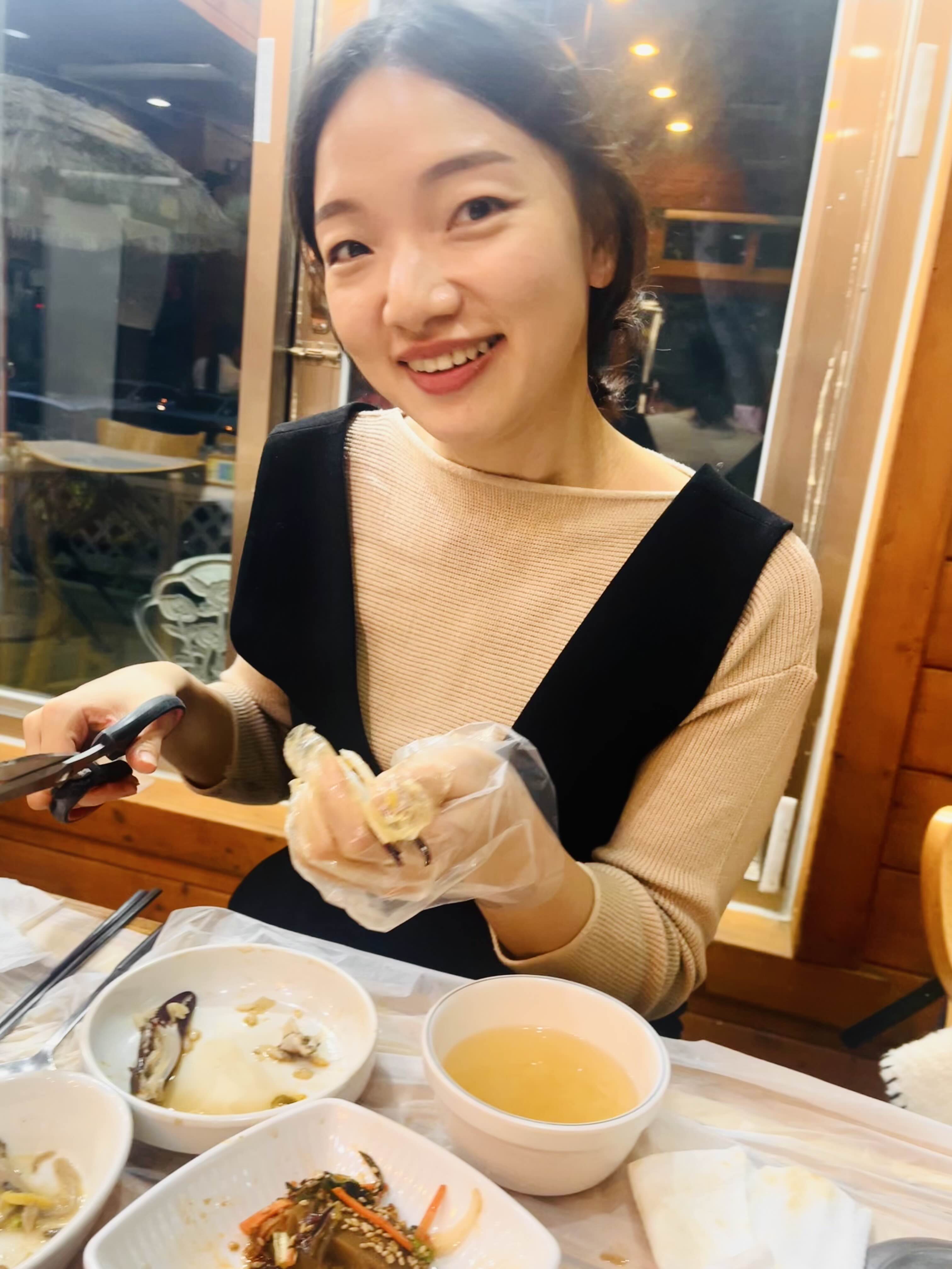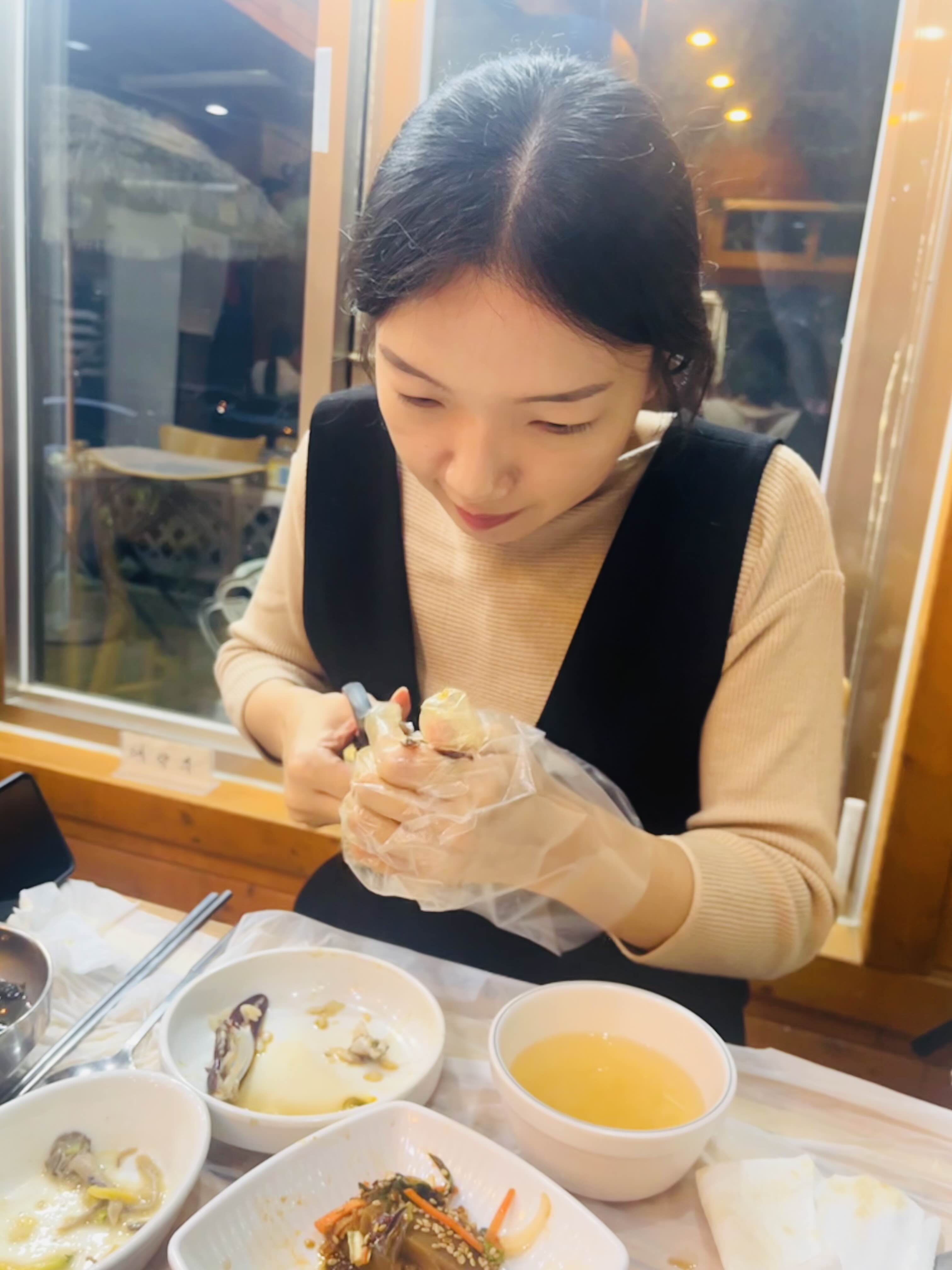 집게발 안 살을 발굴하는 제 친구 ㅋㅋ사진 찍으니까 바로 예쁜 미소를 날리는 사랑스러운ㅋㅋ