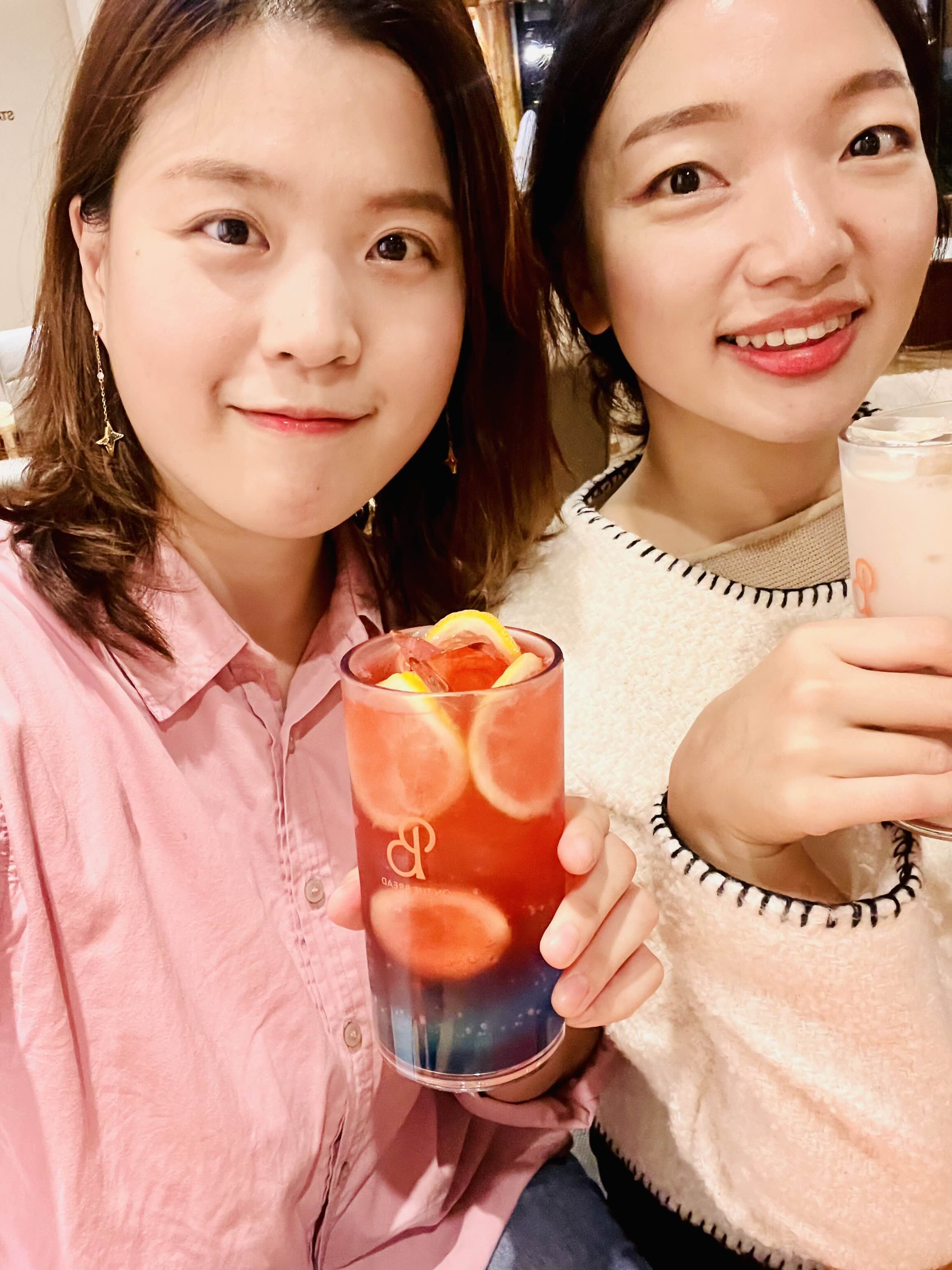 꽤 늦은 시간인데도 사람이 꽤 있었어요. 내부가 생각보다 엄청 넓고 세련됐더라구요. 통창에 천장이 서까래라서 높기 때문에 개방적인 느낌도 있고 좋았답니다. 디저트도 먹을까 하다가 넘 배불러서 음료만 온더에이드(7,000), 밀크티(6,000) 요렇게 시켰어요. 가격은 꽤 높은 편이네요ㅎㅎ온더에이드는 이 집 시그니쳐 음료래요. 다른 에이드들도 그럴 거 같긴 한데, 레몬슬라이스가 큼지막하게 들어가있고 자몽에이드반/블루레몬에이드반 해서 색깔이 넘 예뻤어요! 맛도 싸구려맛 아니고 직접 청 담근 맛?