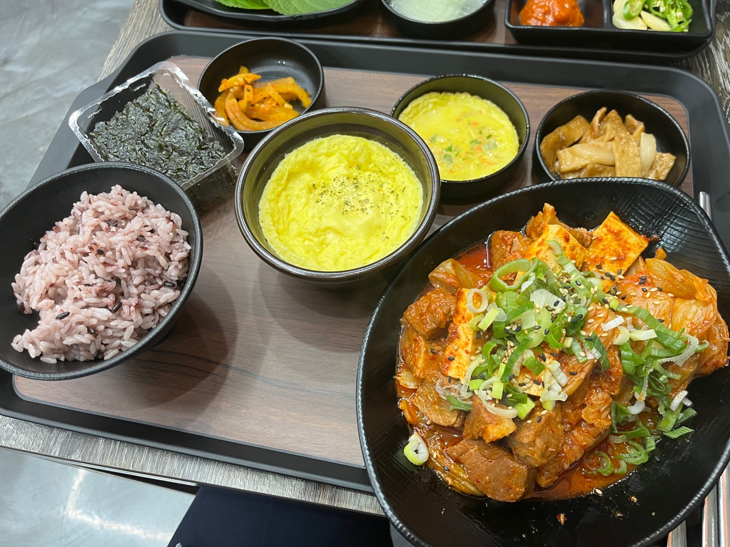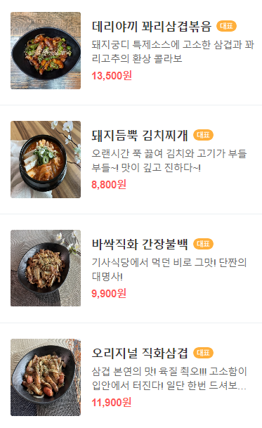 오늘 오랜만에 가서 밥을 먹었는데, 저는 돼지목살김치찜(11,900)을 시켰고 동료는 바싹직화고추장불백(10,500)을 시켰습니다.