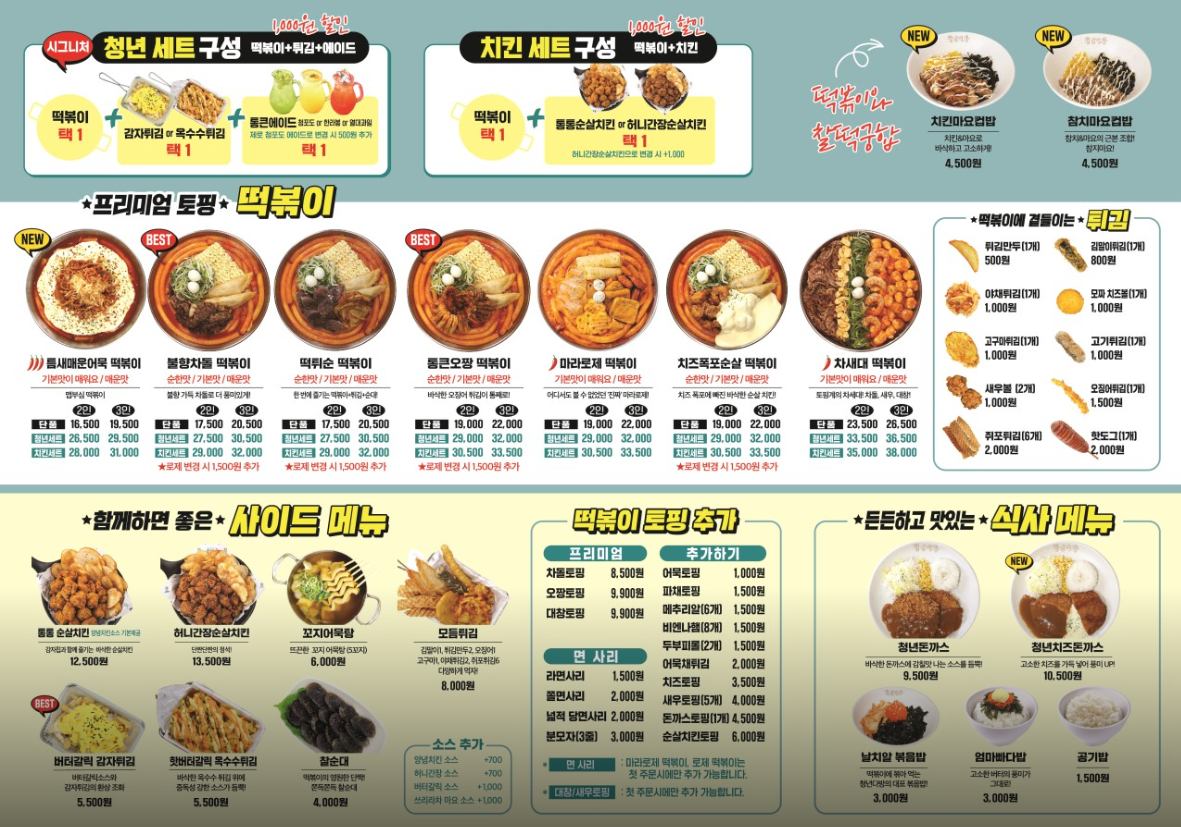 요즘 즉석떡볶이 전문 체인점으로는 청년다방이 제일 영업점이 많지 않나 싶은데요.