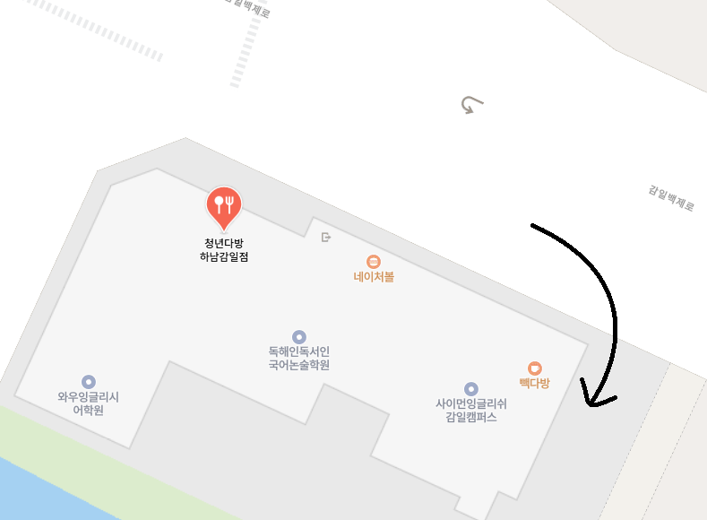 주차는 청년다방 지나서 빽다방까지 가면 그 옆으로 주차장입구가 보여요.