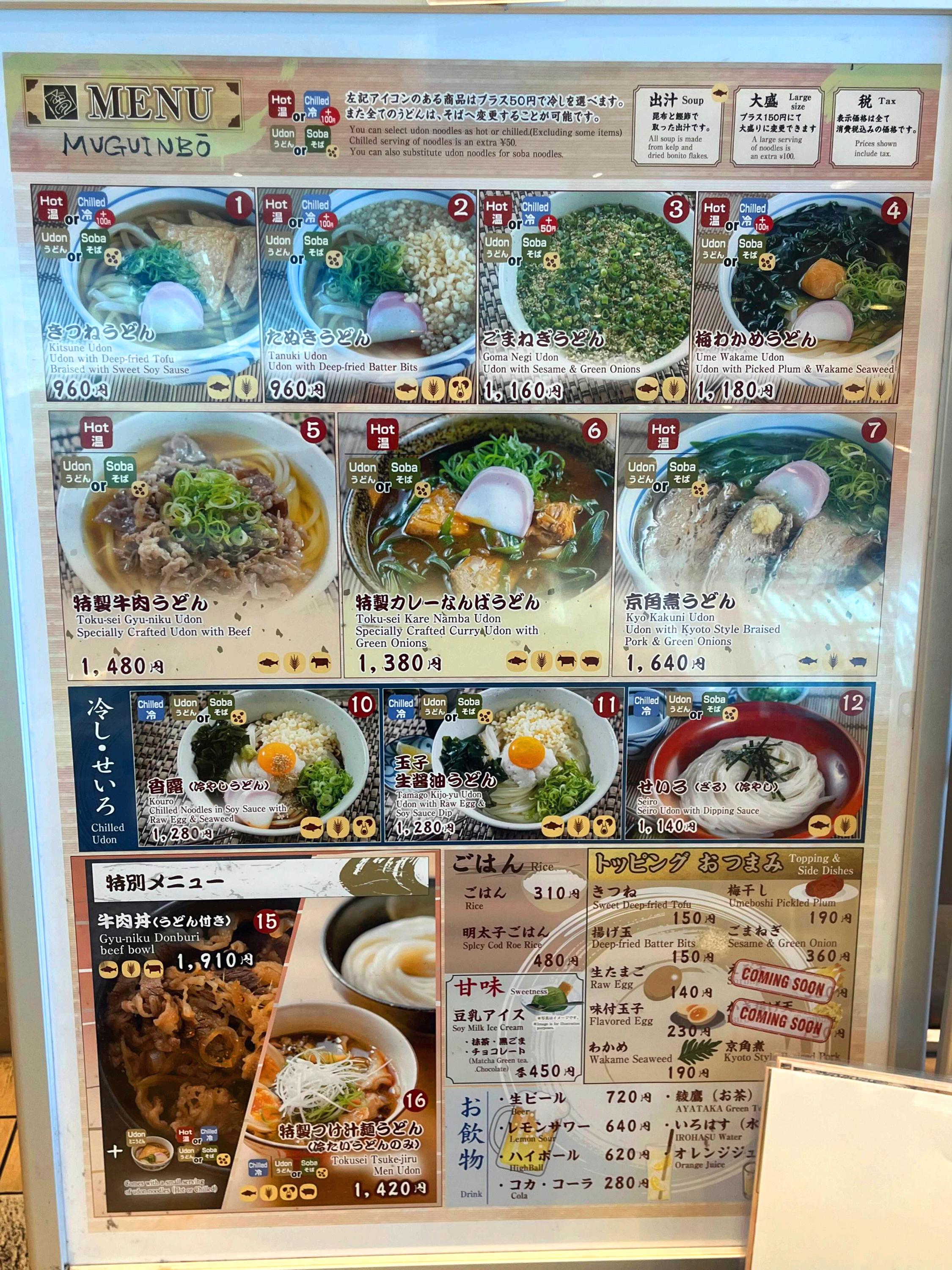 타누키우동, 키츠네우동, 쪽파우동, 카레우동, 차가운 우동 등등 메뉴가 다양했고