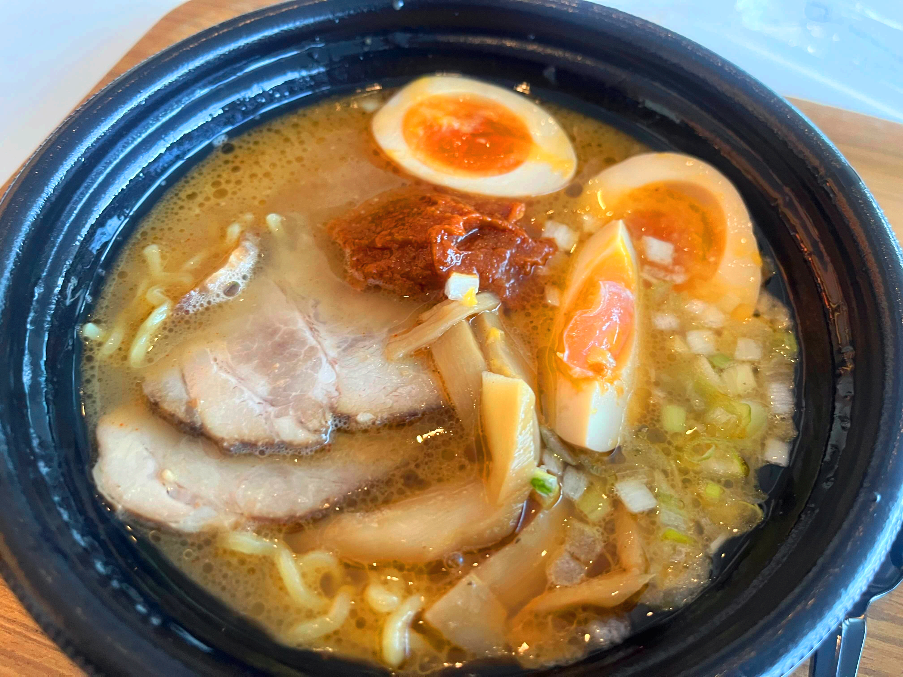 매운미소라멘(아지다마고1/4쪽과 차슈2장이 들어있음)이 1,280엔이었는데