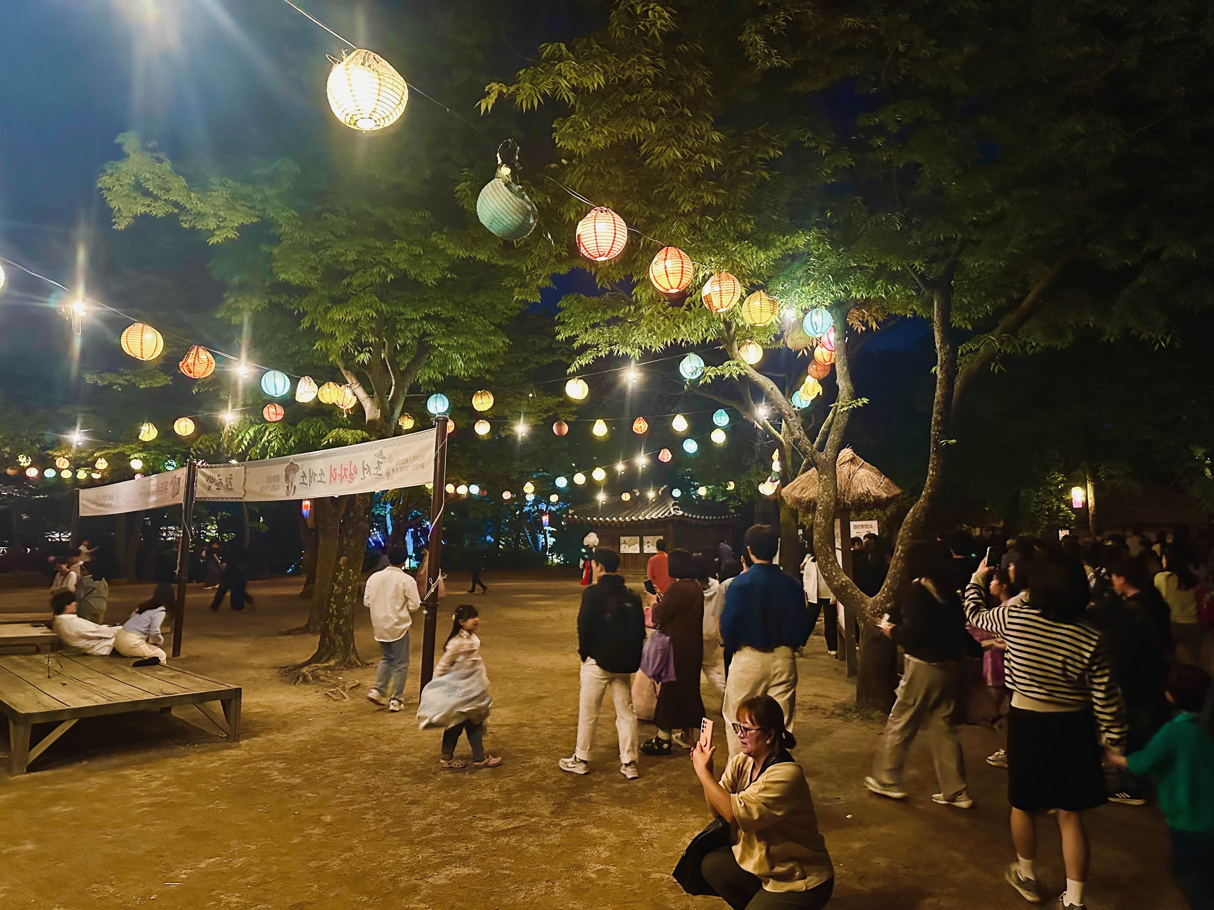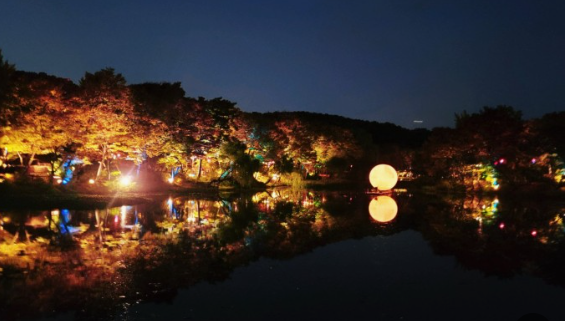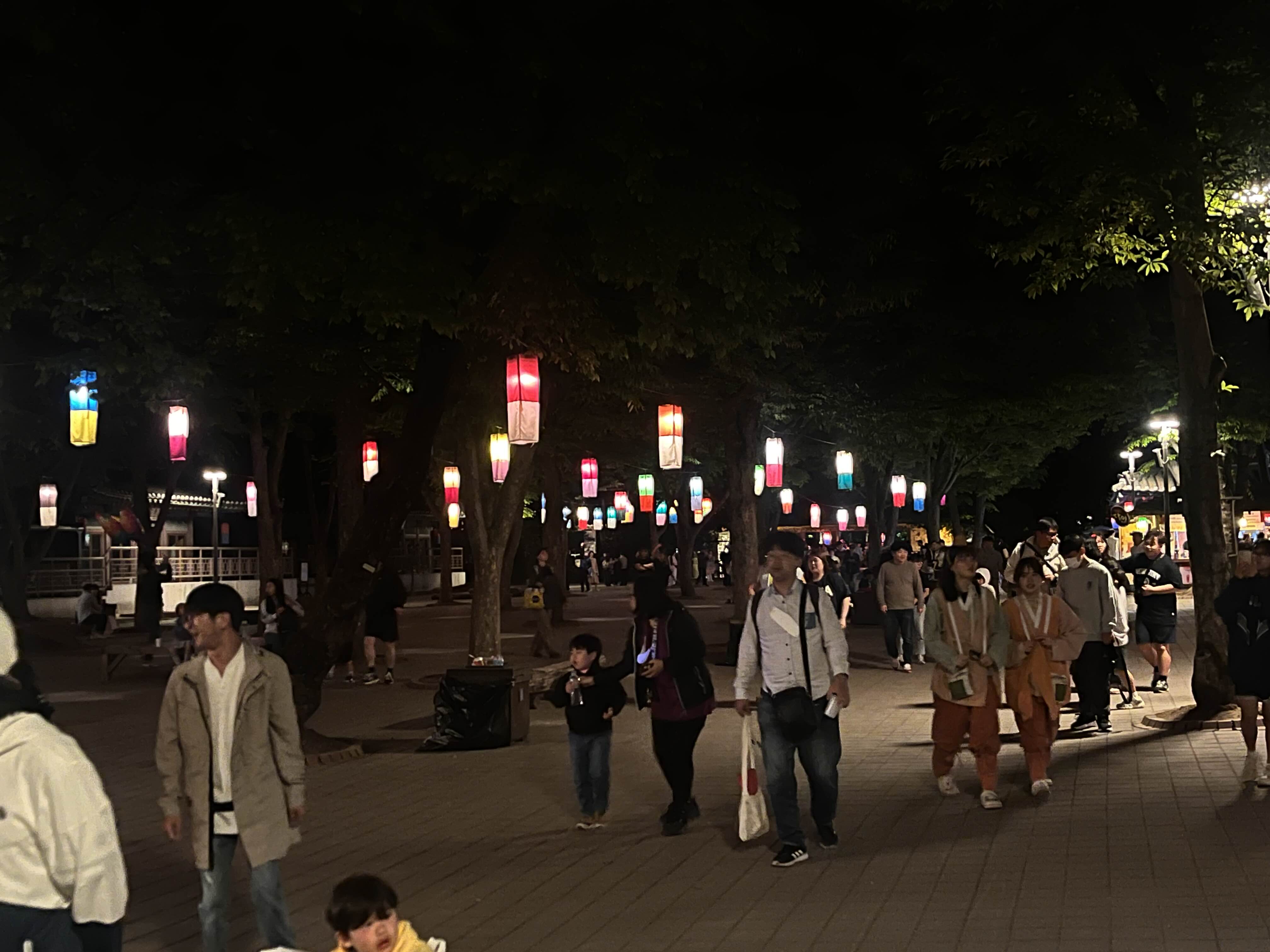 큰 연못 위에 다리가 있는데, 거기도 색색깔 등이 걸려 있어서 사진 찍는 분들이 많았고,