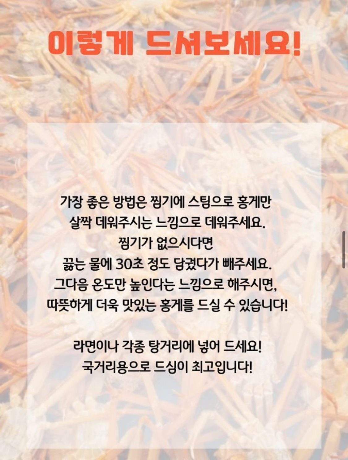 다리는 좀 감질맛 나긴 하지만 작은 게라서 그런지 껍질이 부드러운 편이라 다칠 일은 적을 거 같아요.