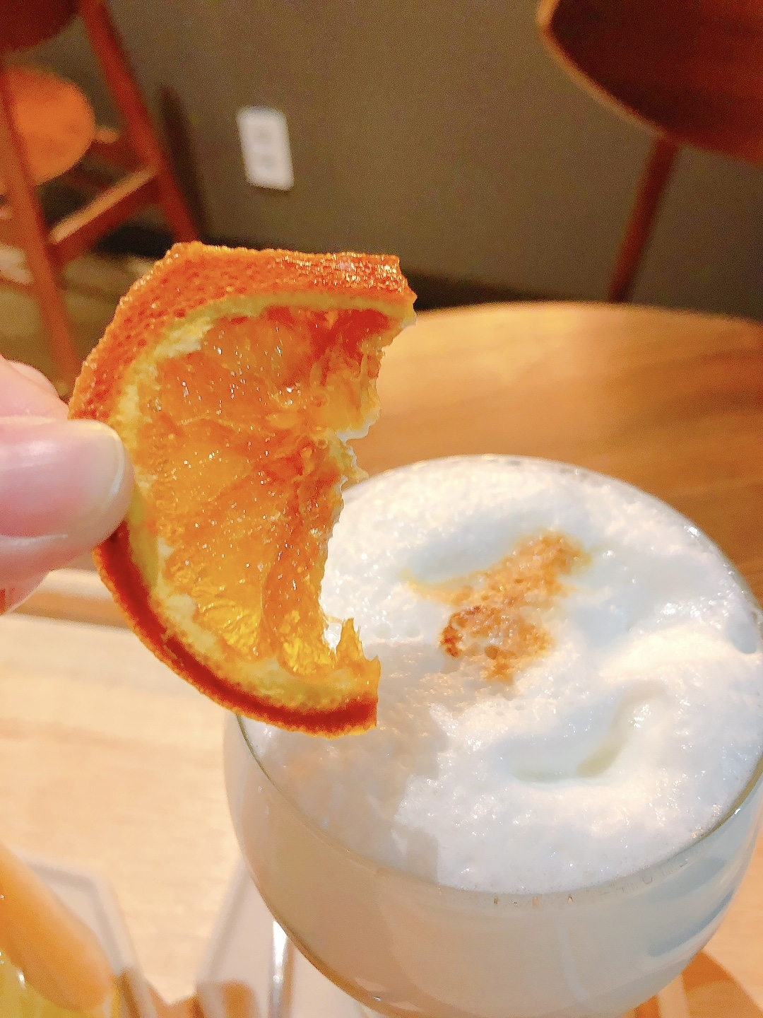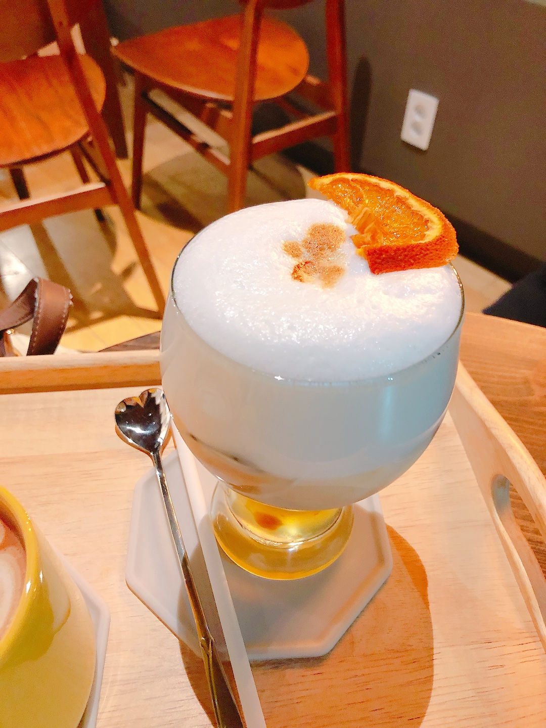 요렇게 생긴 메뉴인데, 커피에 오렌지청을 넣는다는 발상이 신기해서 한 번 시켜보았어요ㅎ