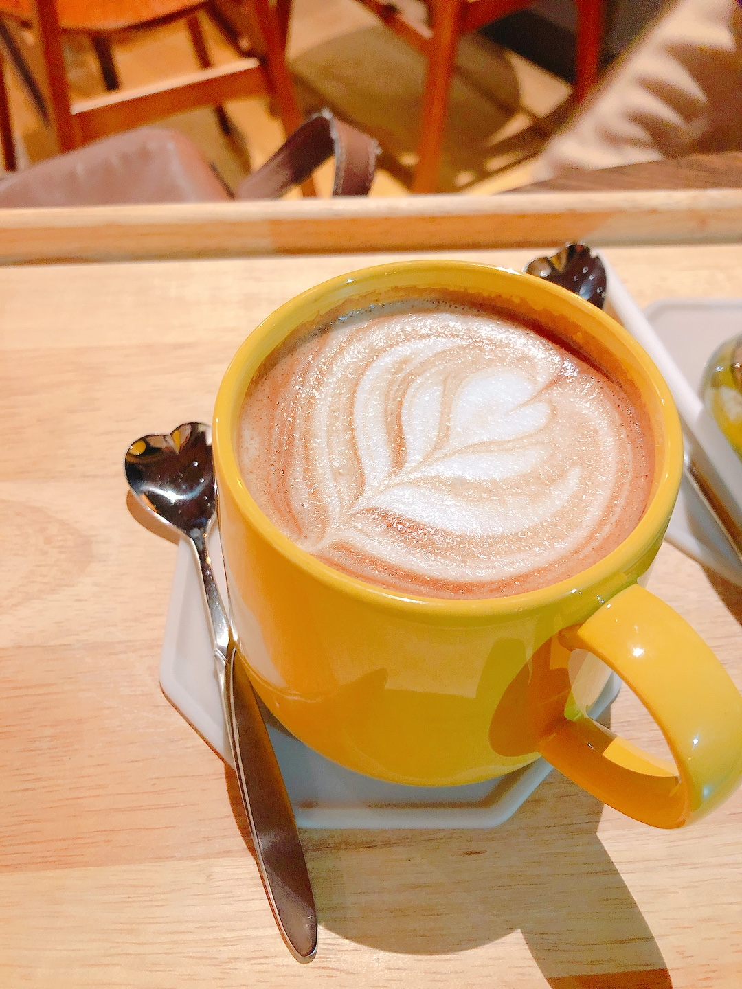 제 친구는 코코아?를 시켰는데, 이것도 예쁘죠? 노란색 머그컵이 너무 귀여워여
