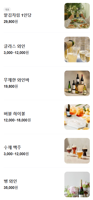 단, 같은 잔에 같은 와인을 리필하면 3,000원만 내면 돼요.