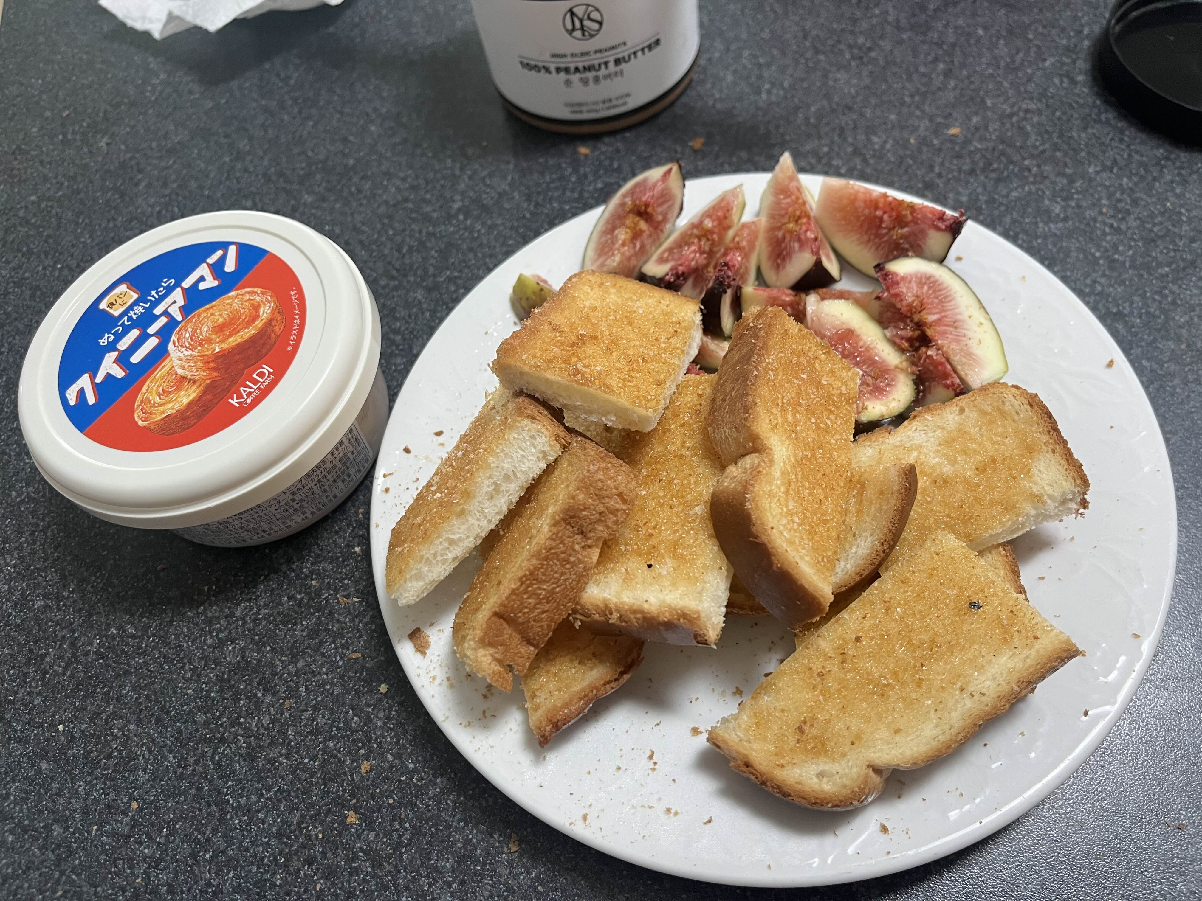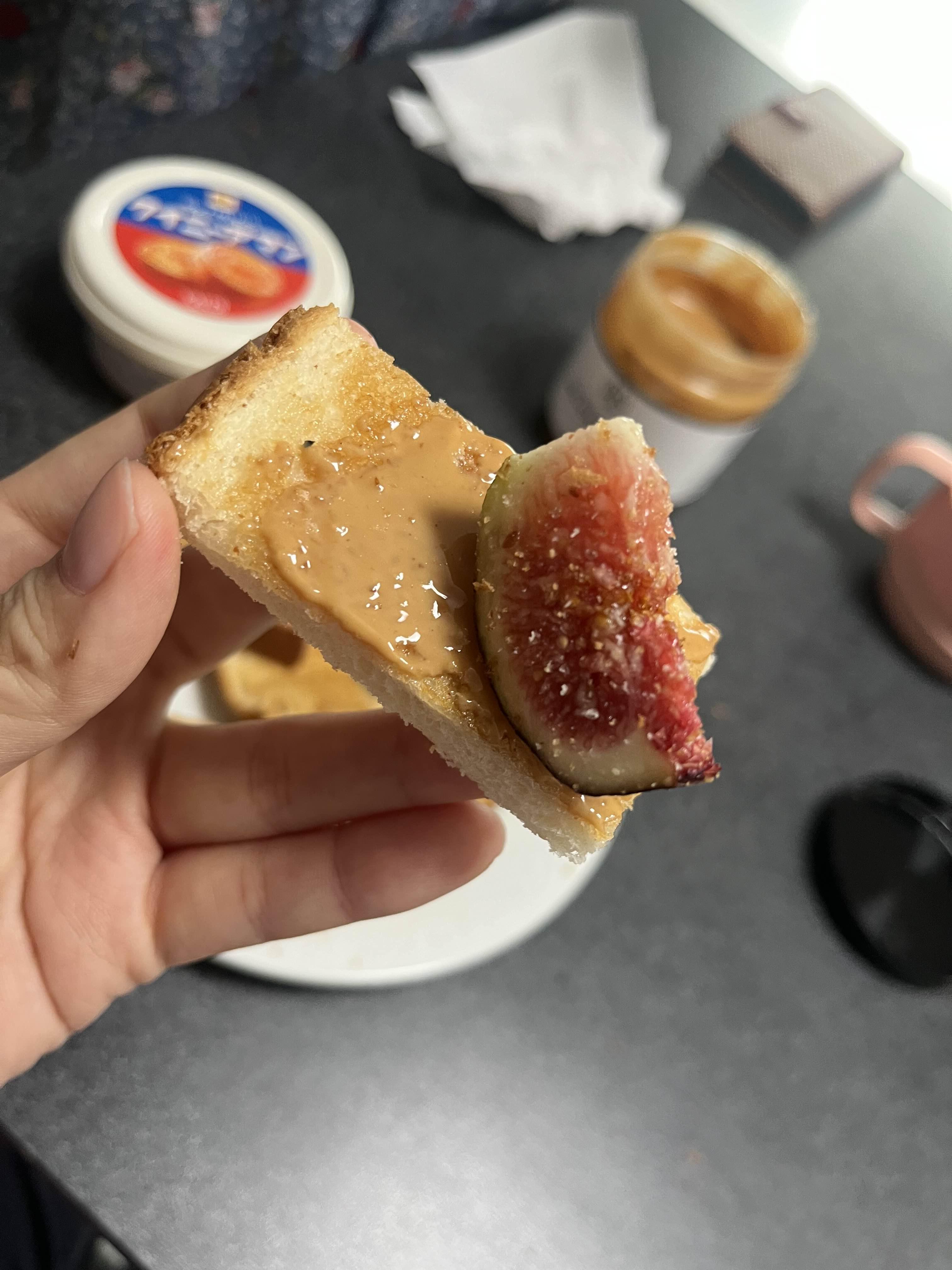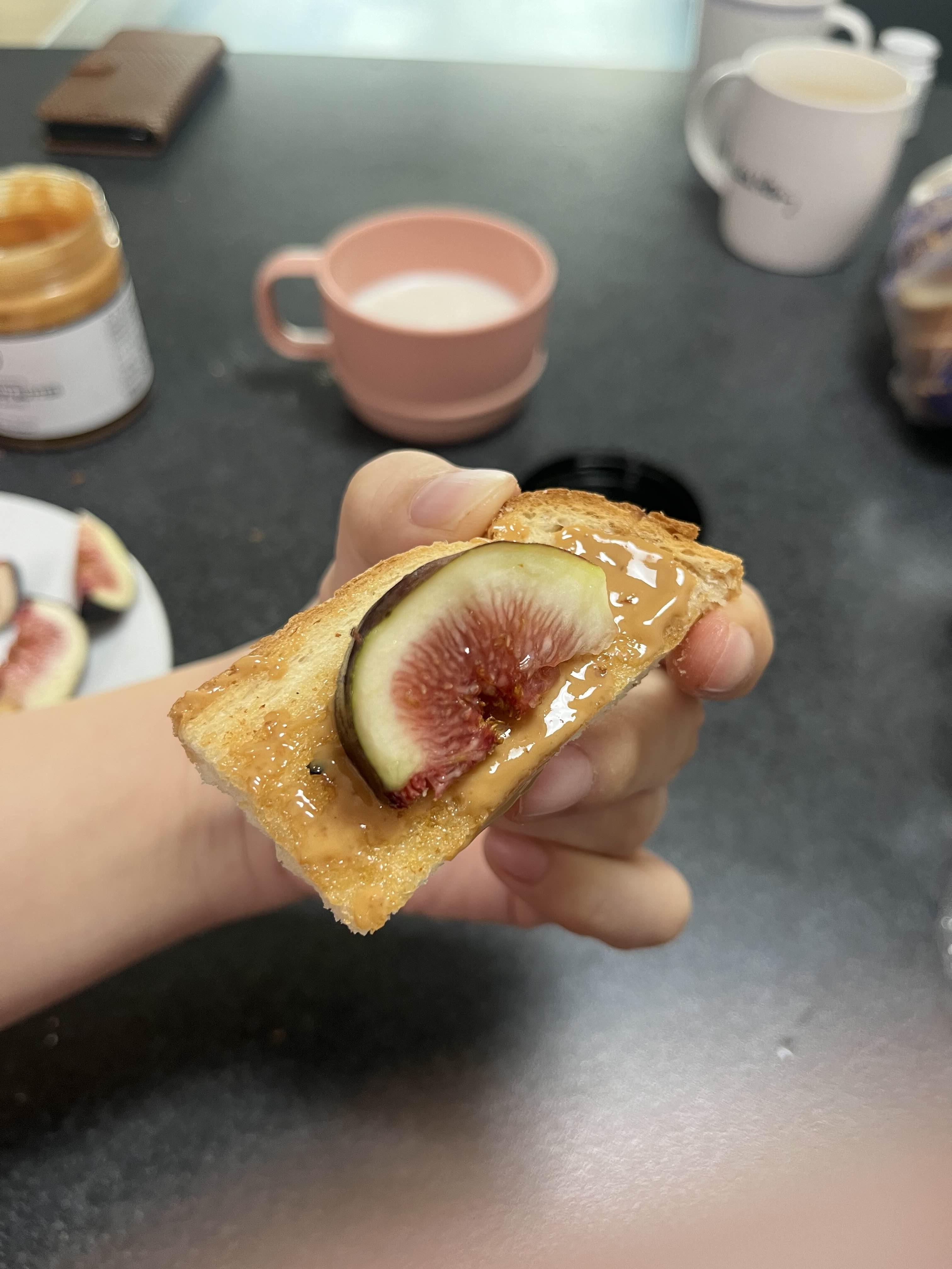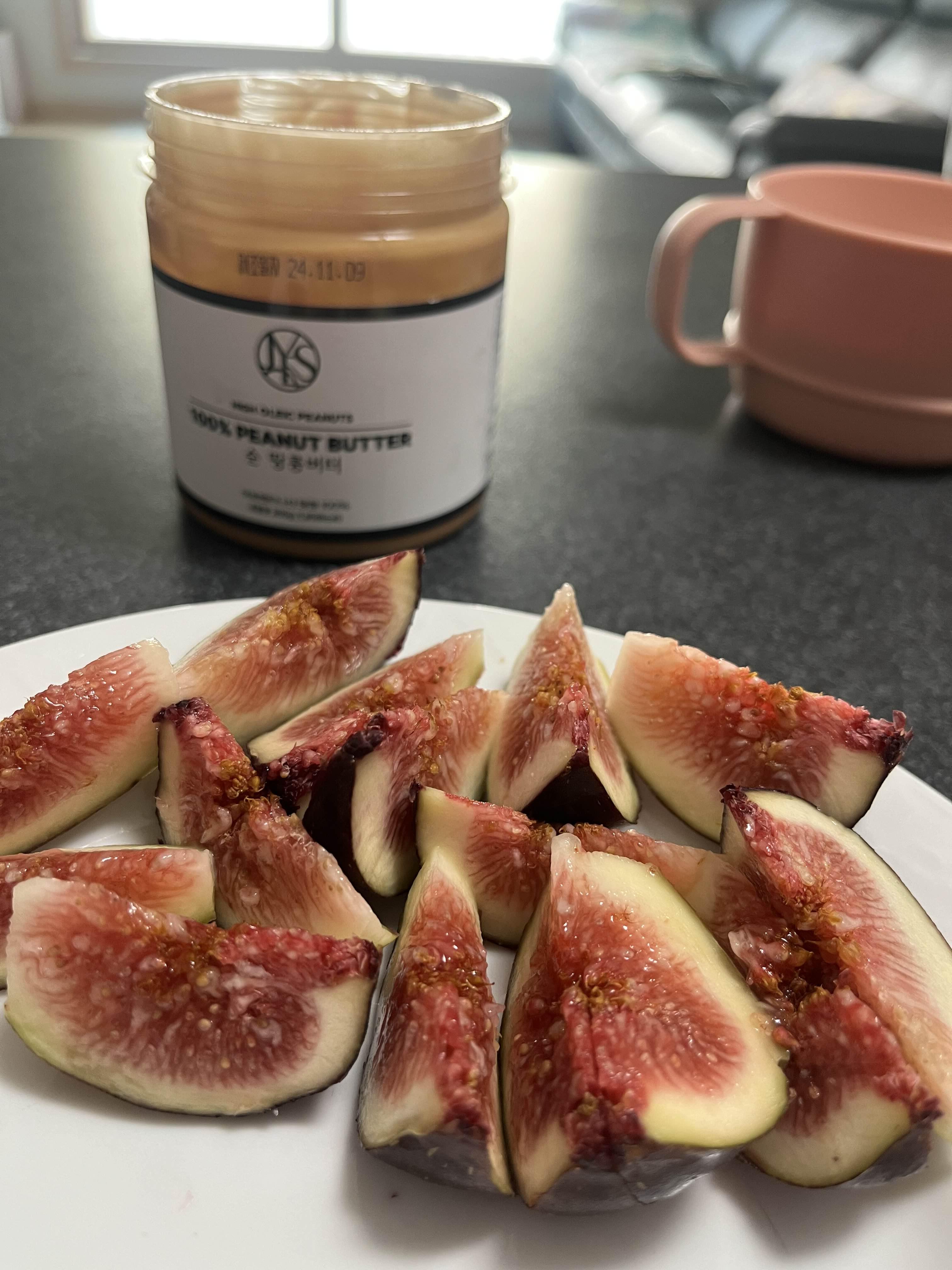 여기에 땅콩버터 싸악 발라주고 한 입당 무화과 올려 먹으면 진짜 환상궁합이더라구여👍👍
