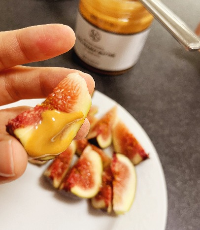 잘 잘라놓은 무화과에 땅콩버터를 싸악 발라서 한 입!