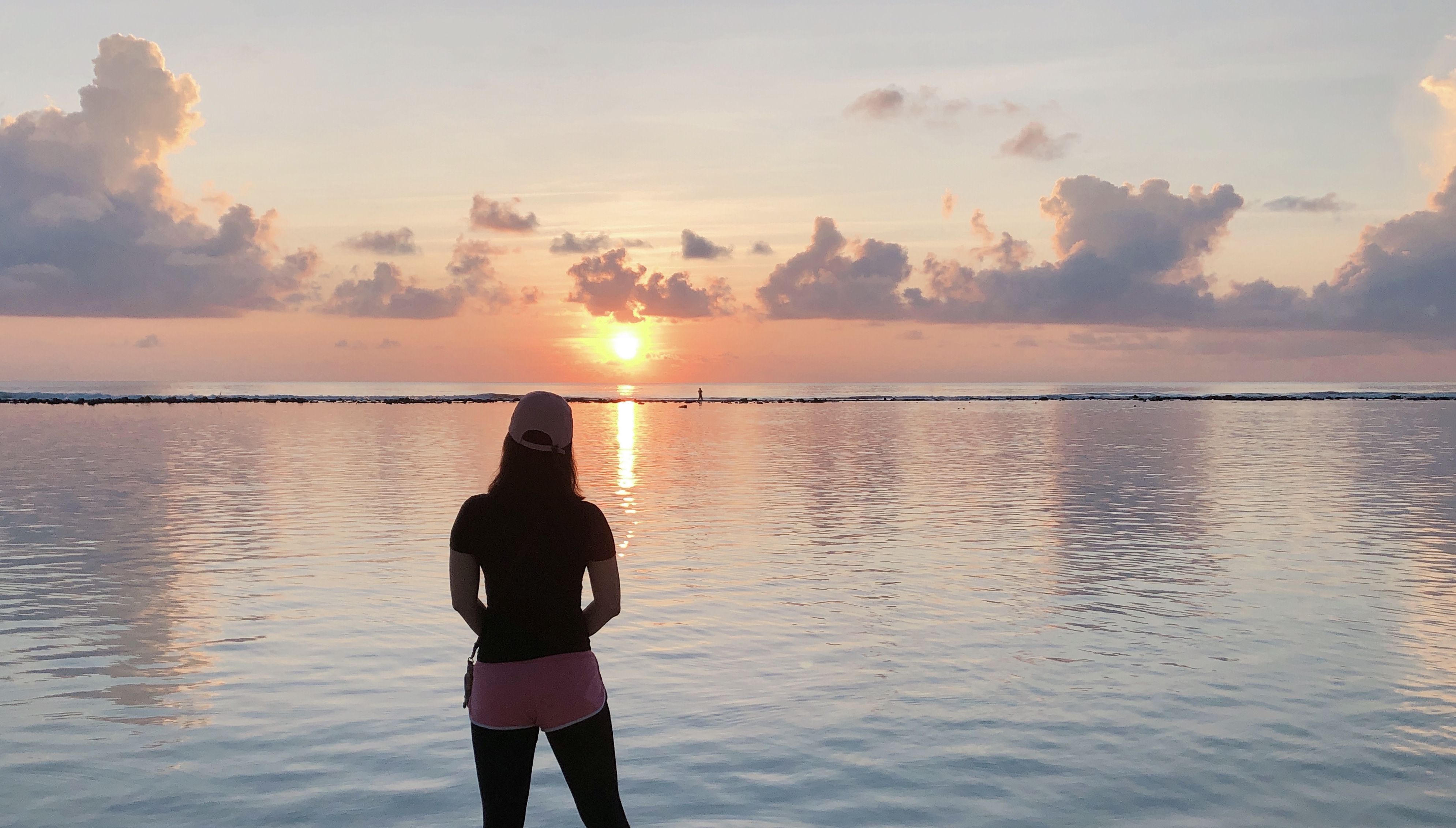 몰디브 여행 2일 차, 훌루말레에서 보는 몰디브의 아침입니다. 일부러 해변에서 해돋이를 보고 싶어서 일찍 일어났어요.
