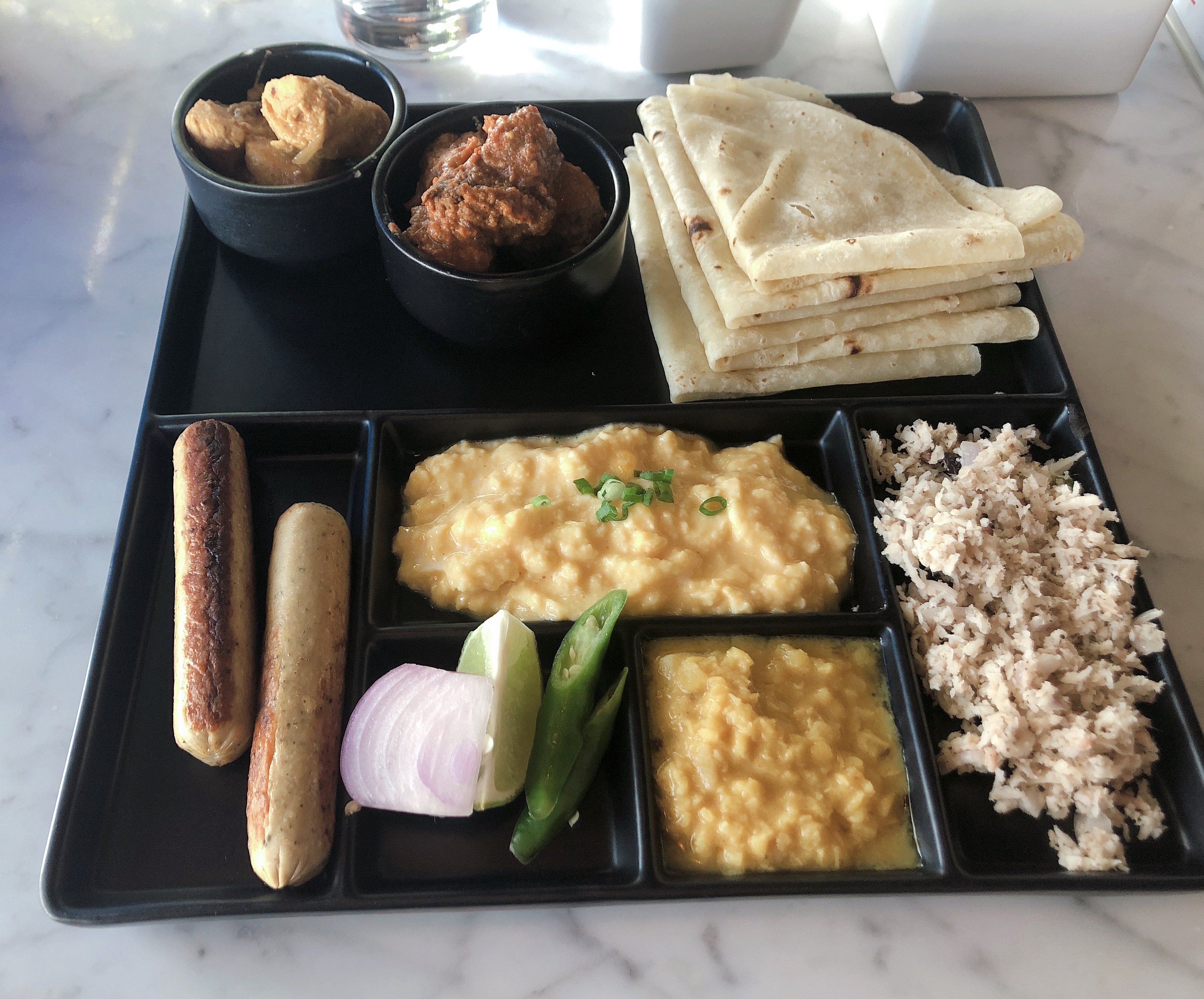 제가 주문한 몰디브아침식사에는 커리와 로띠가 나왔어요. 커리는 치킨커리와 달커리 두 종류였고, 로띠(Roshi)는 얇고 작은 또띠아 느낌인데, 인도의 난과 같은 역할이었어요. 그 외에 닭고기소세지와 스크램블에그, 캔참치샐러드(mashuni)와 양파, 라임, 고추 등이 함께 나왔어요. 고추는 꽤 매웠던 기억이 있어요. 치킨커리도 고추를 넣은건지 알싸하게 매웠어요. 제 생각에, 커리를 먹는 나라는 매운 걸 잘 먹는 것 같아요. 그래서 그런지 한국인인 제 입맛에 잘 맞았습니다. 음식이 깔끔하고 양도 적당해서 맛있게 먹었고 소화도 잘 됐어요. 그리고 무엇보다, 몰디브 사람들은 이렇게 아침을 먹는구나 알 수 있어서 좋았어요. 다음에 가면 또 이용할 것 같아요!