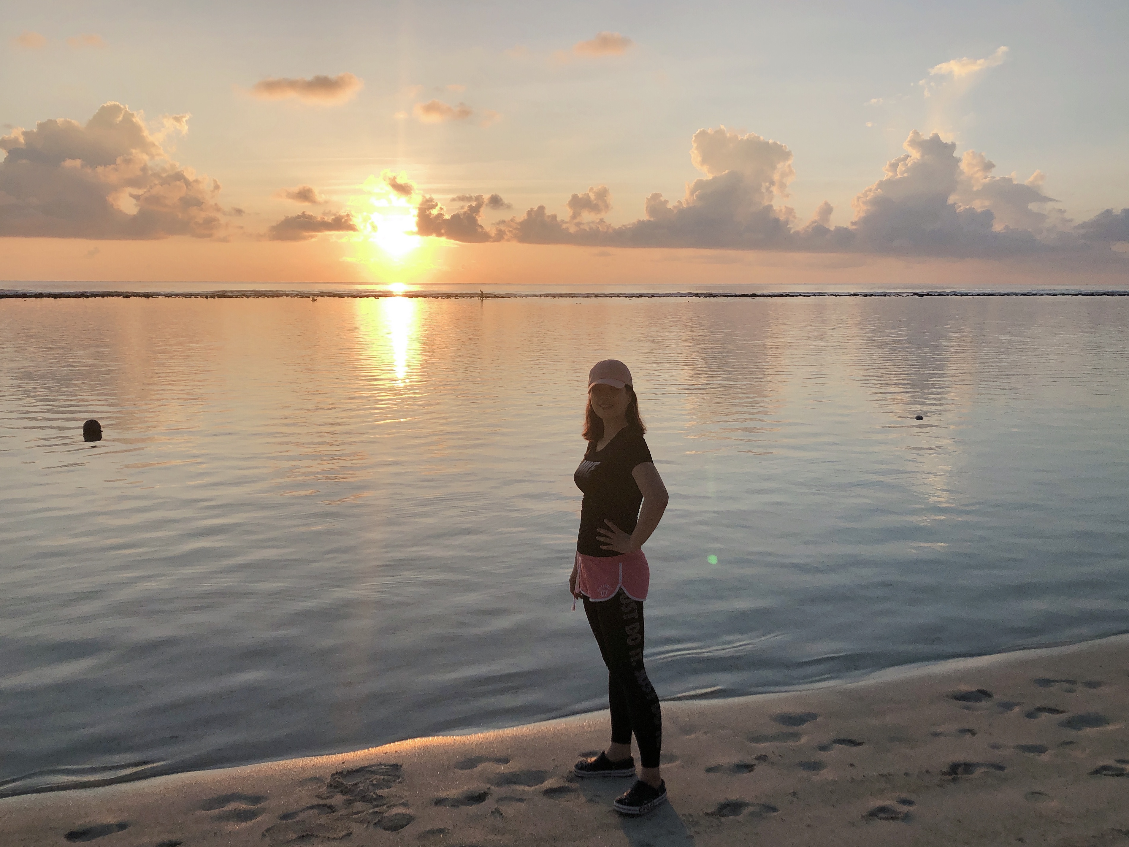 몰디브 여행 2일 차, 훌루말레에서 보는 몰디브의 아침입니다. 일부러 해변에서 해돋이를 보고 싶어서 일찍 일어났어요.