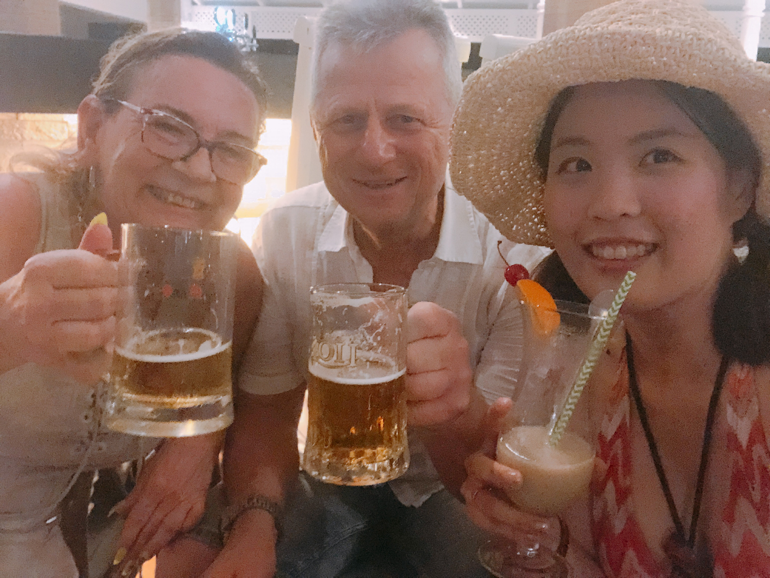 공연이 끝나고 나서는 모두 친해져서 함께 사진도 찍고 건배도 했어요. 제가 일본에 살고 있던 때였는데, 여기서 일본사람들을 만나니까 엄청 반가웠어요. 모히또 두 잔 먹고 취해서 아주 흥에 겨워 놀다가 제 방갈로로 돌아와서 숙면했습니다.